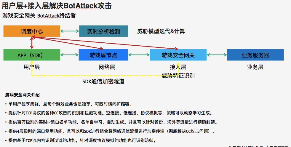 游戏盾SDK是面向移动APP用户推出的高度可定制的网络安全解决方案,本方案中通过SDK的集成可以实现DDoS攻击的免疫和CC攻击的问题得到解决。