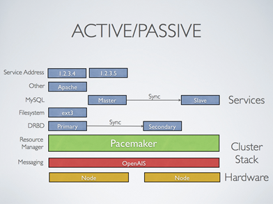 heartbeat v3分离出来的项目,配置接口:CLI:crm、pcs和GUI:hawk(WEB-GUI)、LCMC、pacemaker-mgmt、pcs