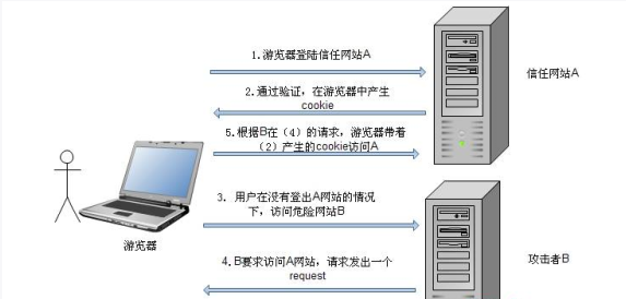 2 . 在用户没有登出站点 A 的情况下(也就是 cookie 生效的情况下),访问了恶意攻击者提供的引诱危险站点 B (B 站点要求访问站点A)。