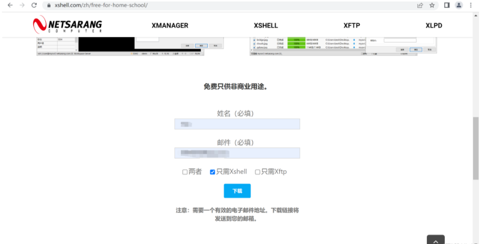 1.访问XShell官网,填写姓名和邮箱即可获取下载地址