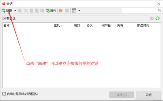 2. 点击“新建”,新建会话