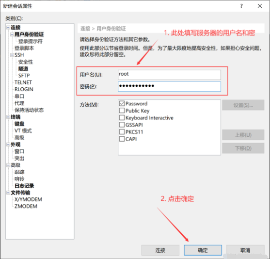 4. 填写服务器的用户名和密码,之后点击“确定”