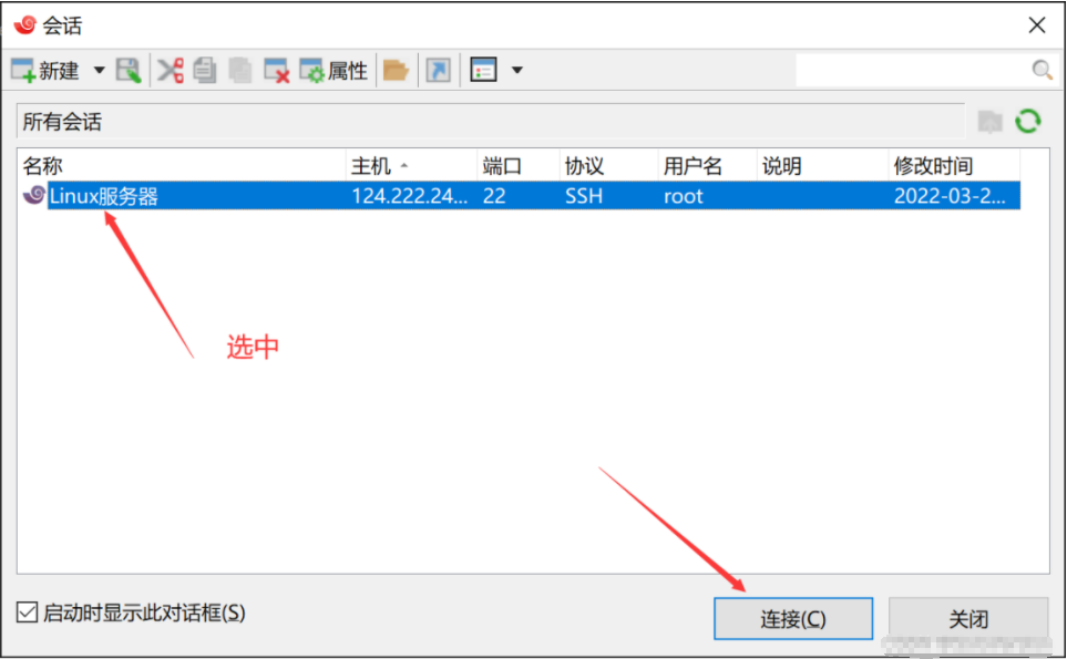 5.选中会话,点击“连接”
